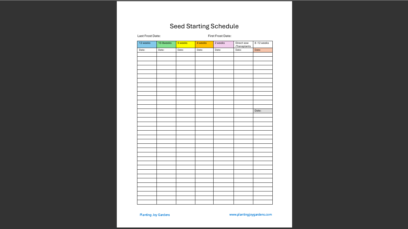 Plantingjoygardens . 1/30/26 Plantingjoygardens . 1/30/26 Free download template: Seed Starting Schedule Seed Starting Schedule Template.pdf Read More